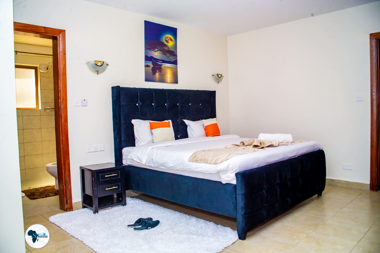 This apartment offers a calm and comfortable stay in the heart of town. All three bedrooms are ensuite, giving every guest privacy and convenience. The living area opens up to a private balcony with a clear view of Lake Nakuru, perfect for relaxing after a long day.